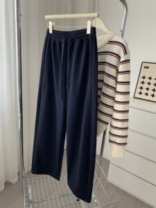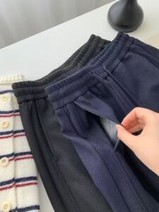 含醋酸纤维/绵羊毛·670g·牛仔色柔软质感弯刀裤·宽松长裤秋装