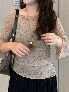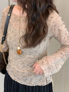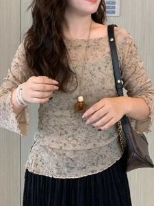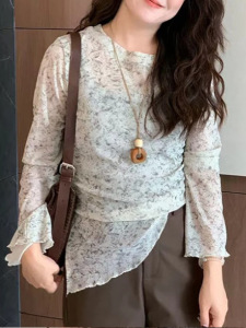 2025年大码韩系碎花内搭打底衫上衣秋季胖mm收腰气质显瘦长袖t恤