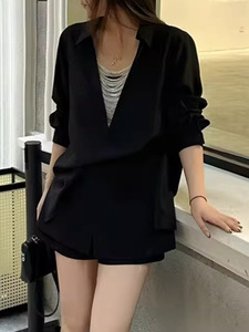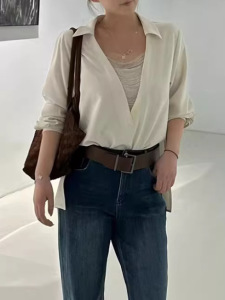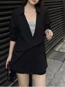 2025年大码女装拼接v领衬衫长袖早秋新款胖mm宽松显瘦内搭小衫上