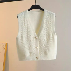 v领针织开衫马甲背心女春秋新款麻花纹叠穿纯色无袖外穿时尚毛衣