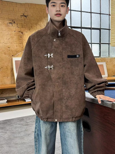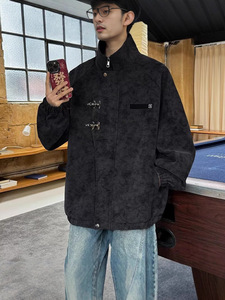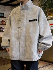 PLQV新款2025中式风扎染皮衣休闲夹克外套宽松情侣装百搭复古高街