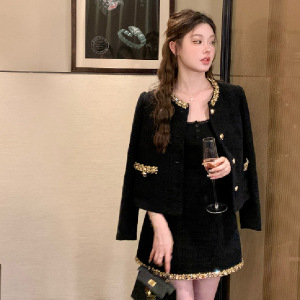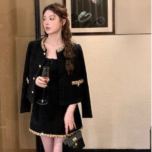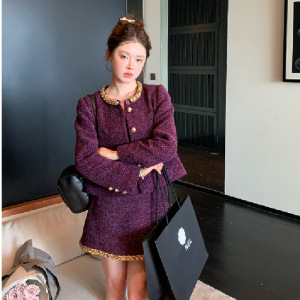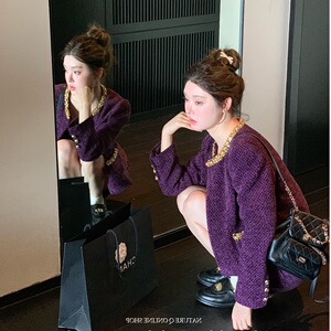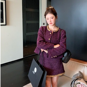 2025年秋富家千金紫色小香风套装裙女短外套气质名媛两件套短款潮