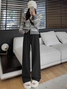 深灰色软糯山本糯米裤女春秋冬加绒保暖休闲垂感长裤小个子阔腿裤