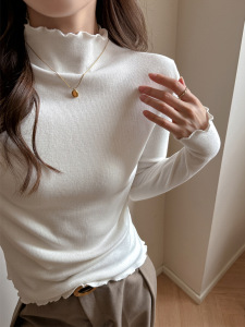 仿羊绒木耳半高领秋冬长袖打底衫女内搭正肩t恤高级感可外穿上衣