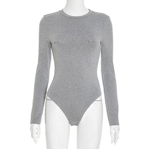 D25BS393外贸女装秋季新款设计感百搭鸡眼扣纯色长袖修身连体衣