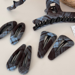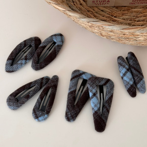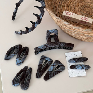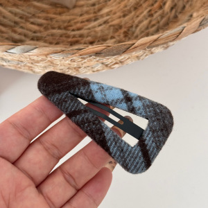 蓝灰色格纹布艺发夹时尚甜美盘发抓夹鲨鱼夹刘海夹BB夹百搭发饰