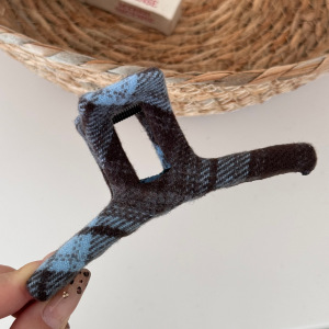 蓝灰色格纹-一字抓夹