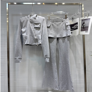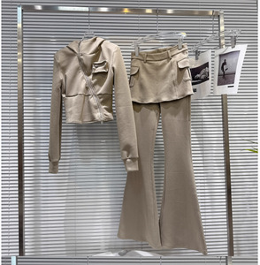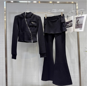 2025秋季新款甜酷辣妹斜拉链连帽卫衣+修身微喇裤套装女