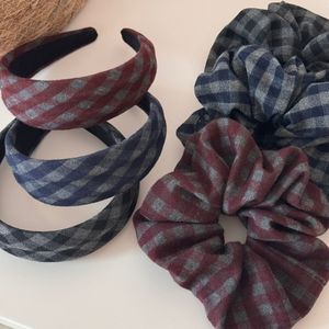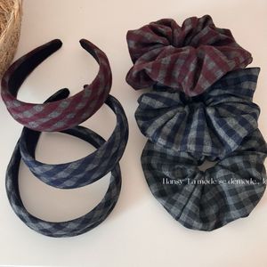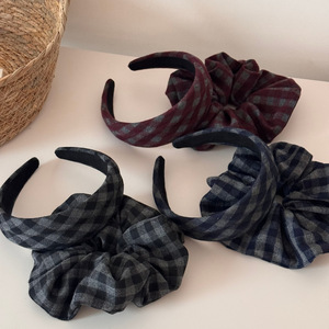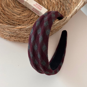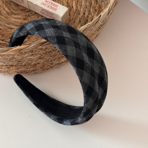 韩版灰底格纹宽版发箍复古发卡简约简约头饰新款日常百搭头箍发饰