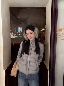 平湖霜林2025年冬季新款拼接针织袖轻羽绒90白鸭绒女式外套修身轻