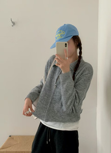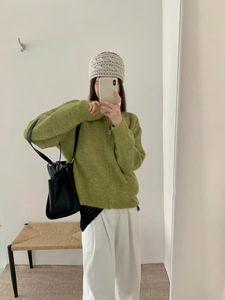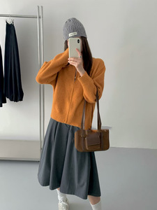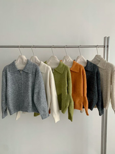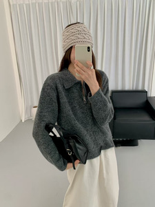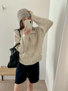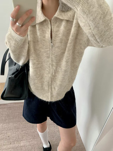 秋季超好看翻领拉链短款毛衣开衫女韩版慵懒风百搭小个子针织上衣