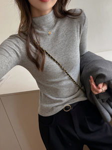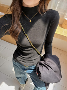 仿羊绒秋冬季半高领正肩长袖t恤女内搭中领打底衫百搭可外穿上衣