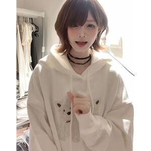 美式重磅小狗刺绣白色连帽卫衣女秋冬2025新款外套宽松慵懒风上衣