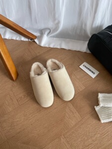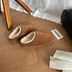 河南桑坡雪地靴新款外牛皮内羊毛一体时尚保暖埃莱亚便鞋懒人外穿