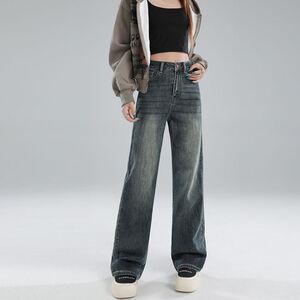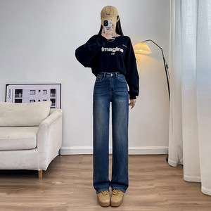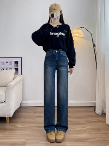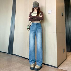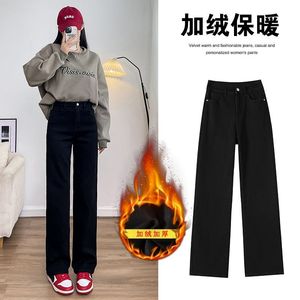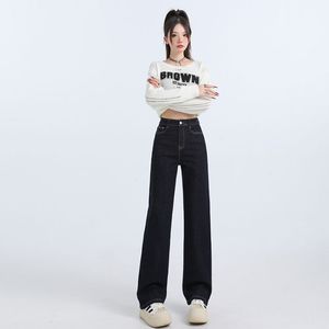 窄版阔腿牛仔裤女2025秋冬新宽弹力高腰小个子垂感加绒直筒拖地裤