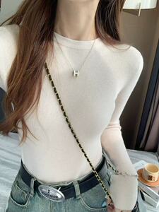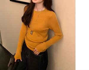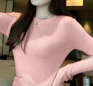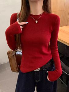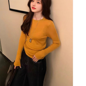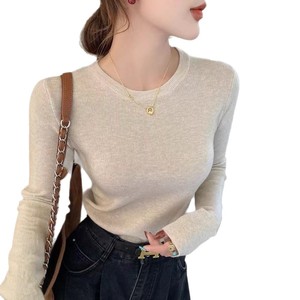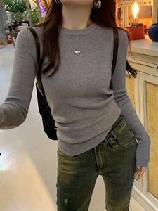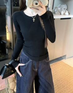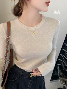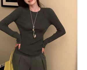 2025韩系软糯针织打底圆领上衣女装秋季通勤别致显瘦内搭气质毛衣