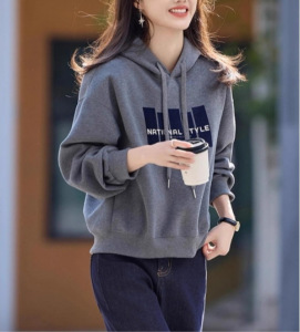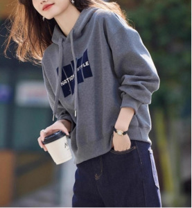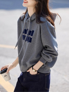 韩版减龄灰色独特印花抽绳连帽卫衣2025春季新款洋气气质时髦上衣