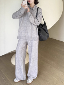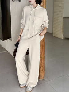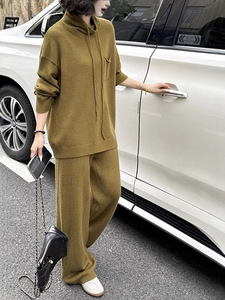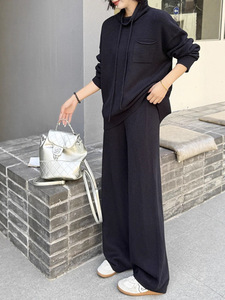 外贸跨境套装女秋冬2025新款休闲纯色宽松针织半高领毛衣两件套女
