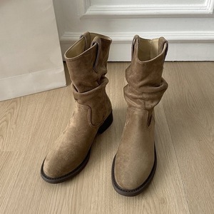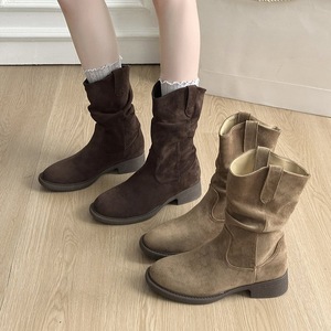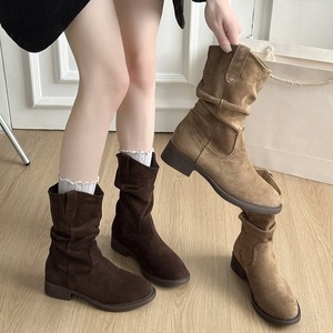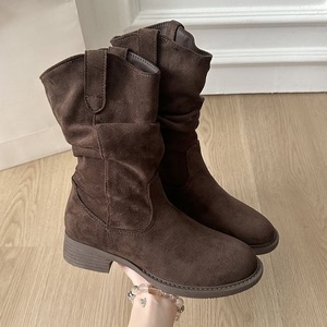 西部牛仔复古短靴子女2025新款夏秋季美拉德草原中筒堆堆靴马丁靴