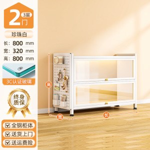 送一块洞洞板:云朵白2门3层70*32*80cm【3c钢化玻璃款】