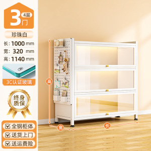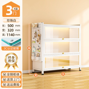 送一块洞洞板:云朵白3门4层50*32*114cm【3c钢化玻璃款】