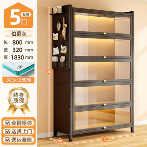 暮云灰5门6层80*32*183cm【3c钢化玻璃款】