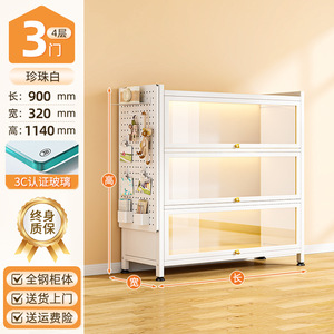 送一块洞洞板:云朵白3门4层90*32*114cm【3c钢化玻璃款】