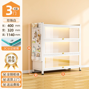 送一块洞洞板:暮云灰3门4层40*32*114cm【3c钢化玻璃款】