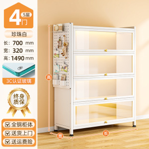 送一块洞洞板:暮云灰4门5层50*32*149cm【3c钢化玻璃款】