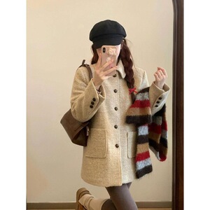 大码胖mm小香风翻领毛呢外套女秋气质设计高级感宽松长袖呢子大衣