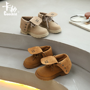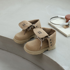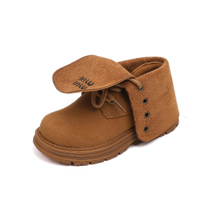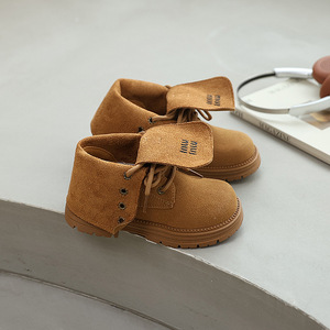 2025秋冬时尚单靴男女童两穿翻毛皮短靴中大童小童平底舒适马丁靴