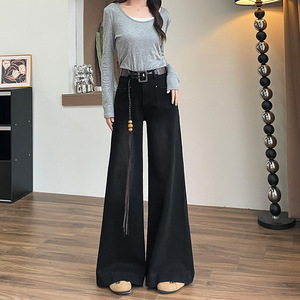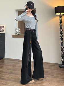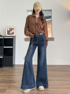 新款秋装美式辣妹风设计感百搭高腰喇叭阔腿裤牛仔裤女长裤配腰带