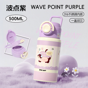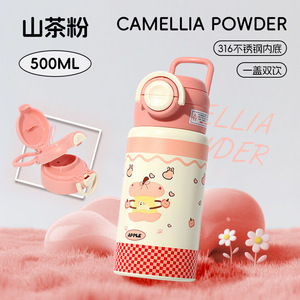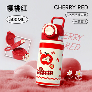 可爱双饮保温杯带提手弹跳杯儿童水杯女生高颜值吸管杯小学生水杯