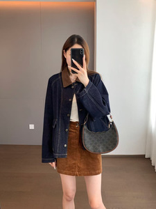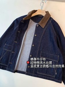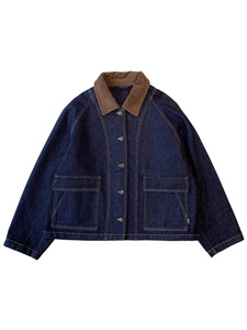 秋季棉弹牛仔布 活性染色廓形灯心绒翻领插肩袖大口袋牛仔外套