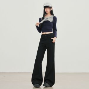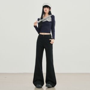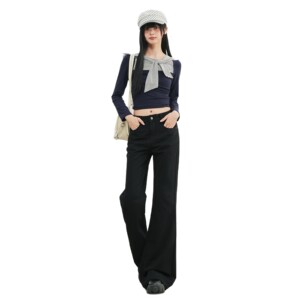 2025秋季新品高腰简约微喇牛仔裤女不贴腿垂感显瘦百搭拖地喇叭裤