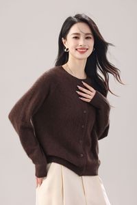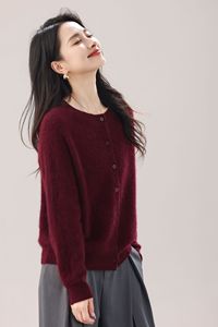 拉绒 25年新 5%山羊绒95%澳洲羊毛 排扣开衫无缝拉毛羊绒女