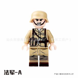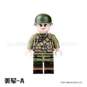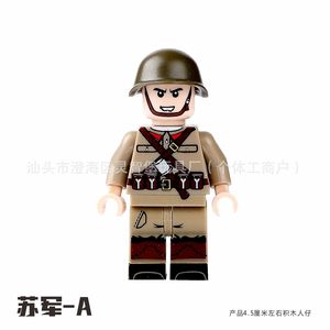 军事二战士兵积木八路军国美苏英法意志愿军人仔小人偶DIY拼装