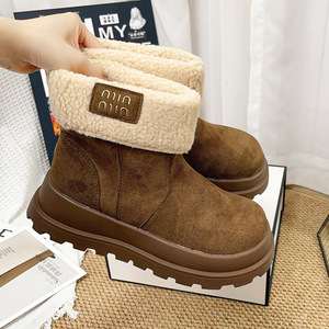 厚底雪地靴女冬季加绒保暖毛毛短靴爆款增高棉鞋百搭休闲勃肯棉靴