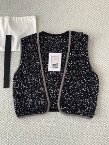 2025早秋新款 小香水钻捆边针织开衫马甲半裙套装 s