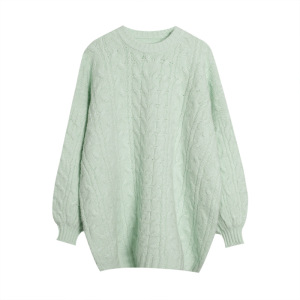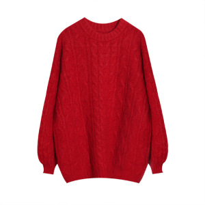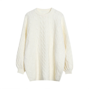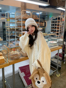陈大钰慵懒奶fufu白色麻花毛衣女秋冬中长款宽松软糯外穿针织上衣