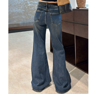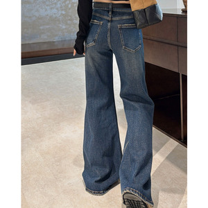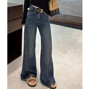 深圳2025新款南油女装欧货复古高腰显瘦侧前开叉拖地阔腿牛仔裤女