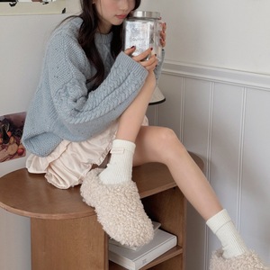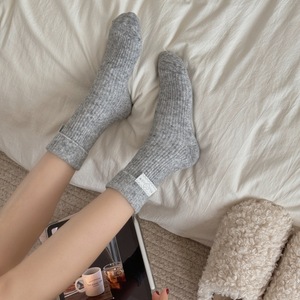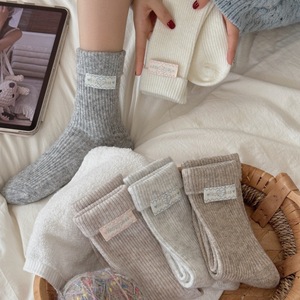 超柔糯米绒中筒袜女士秋冬季新款翻边布标加厚保暖睡眠袜诸暨袜子