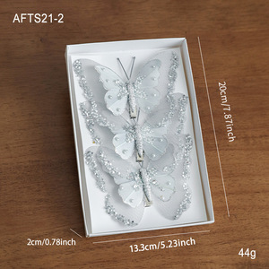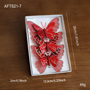 圣诞节装饰双层蝴蝶圣诞树夹子挂饰闪粉仿真网纱镂空挂件装饰