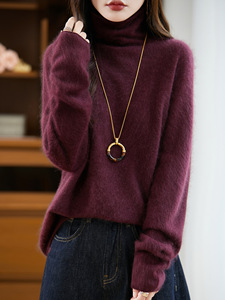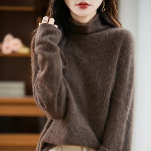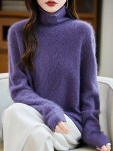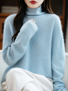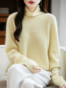 云朵感拉绒羊毛衫堆堆领慵懒风一线成衣针织长袖打底毛衣女秋冬