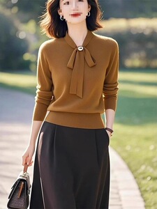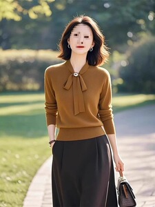 2025早秋新款女装纯色圆领高级感穿搭时尚洋气长袖套头针织衫上衣