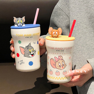 猫和老鼠马克杯高颜值陶瓷水杯家用女生带吸管牛奶杯带盖生日礼物