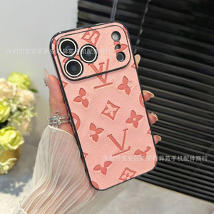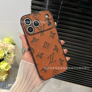 精孔全包贴皮老花大牌保护套适用iPhone17Promax欧美苹果16手机壳