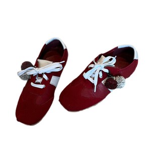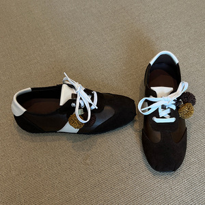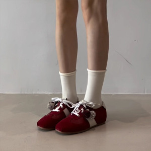 羊皮版~2025新款复古风方头花朵系带德训鞋女百搭休闲运动阿甘鞋