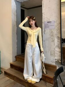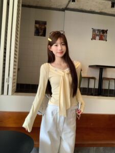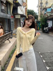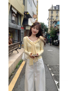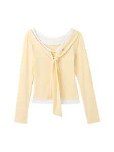 新款鹅黄色海军领内搭打底衫女2025秋季修身显瘦短款长袖t恤上衣