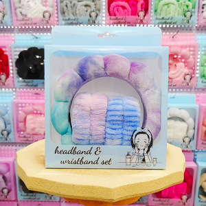 金丝绒扎染蓝紫发箍五件套(拉链袋装)